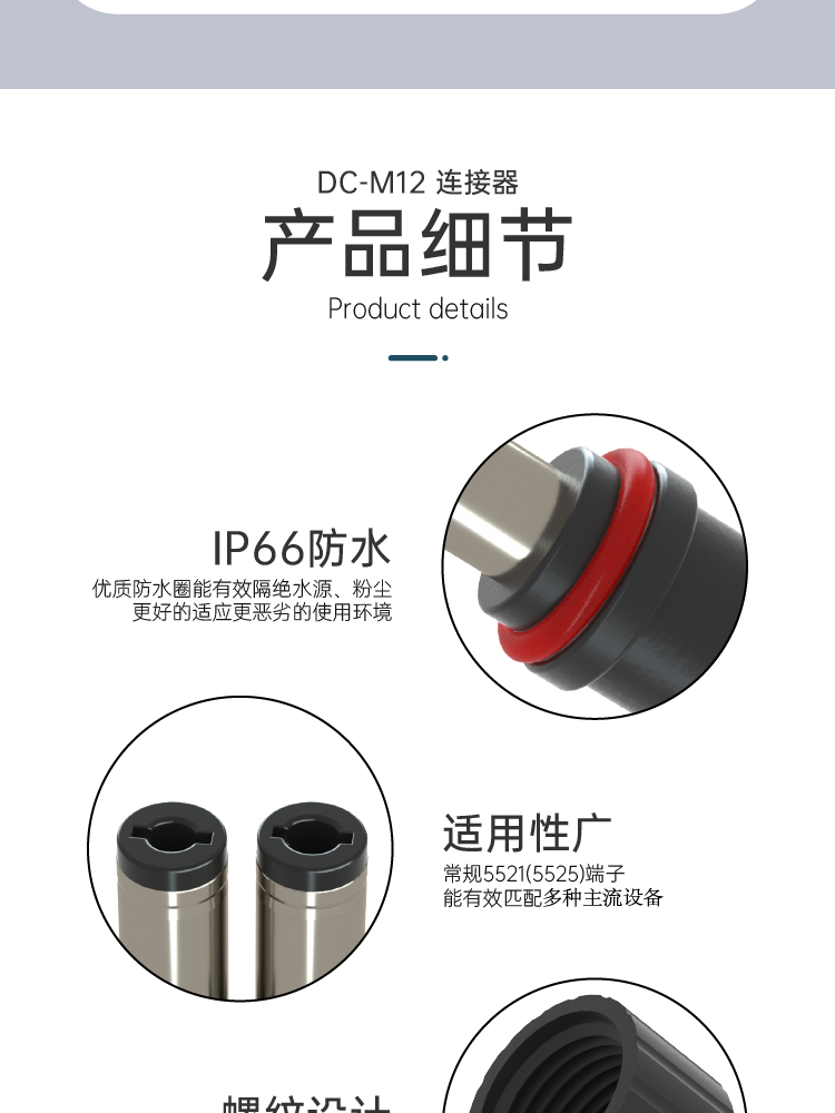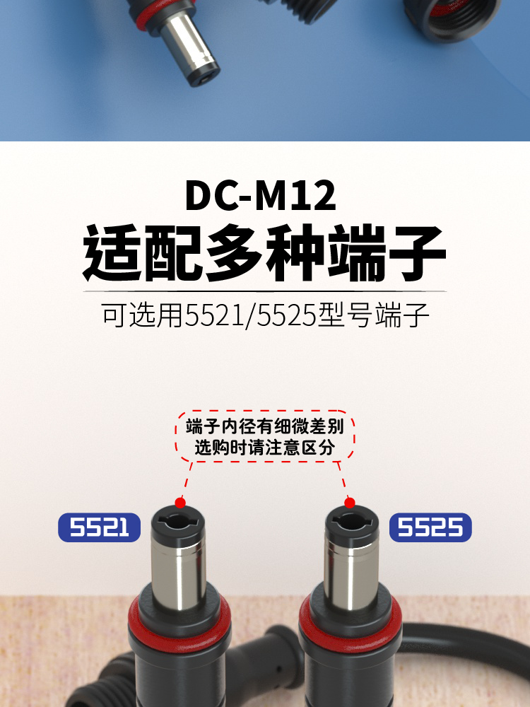 M12電源防水接頭5.5*2.5照明防水插頭